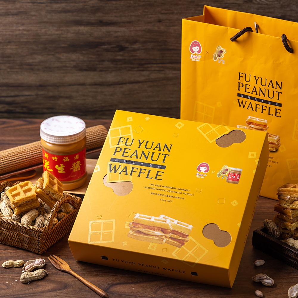 Khám phá hương vị truyền thống đậm đà và sự kết hợp tinh tế giữa độ giòn hoàn hảo của bánh Waffle Bơ Đậu Phộng Fu Yuan với thành phần từ loại bơ đậu phộng nổi tiếng từ Hsinchu, Đài Loan được lựa chọn kỹ lưỡng không chỉ là món ăn nhẹ hấp dẫn mà còn là lựa chọn quà tặng đặc sắc cho bạn bè, gia đình hay đối tác.